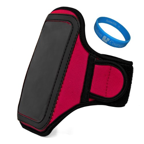 Exercise to the extreme and know that your phone will be protected at all time with our SumacLife Neoprene Armband. Its durable neoprene construction cushions and protects your phone against any rigorous hardcore workout, enabling you to keep your phone in a like new condition. The interior of this armband has been newly designed with dual layer of neoprene padding and covered with a high-grade plastic to prevent any moisture damage to your phone. The 2-piece adjustable Velcro straps allows you to adjust the length of the armband by simply removing or attaching the secondary Velcro Strap. Armband Length without extra strap 16.5 inches - Armband with Extra Strap 22 in. So whether you have small arms or large arms you always get the perfect fit. The side Velcro Strap on the side of the armband allows you to conveniently secure excess headphone cord. This armband also features a rear key slot that allows you to carry you car key or locker key along-side your phone. Includes SumacLife TM Wisdom Courage Wristband
